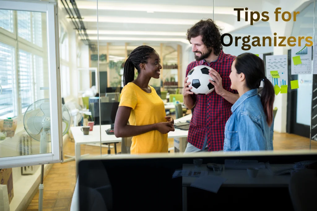 - Use themed office decorations or match-day snacks to make the event lively.
